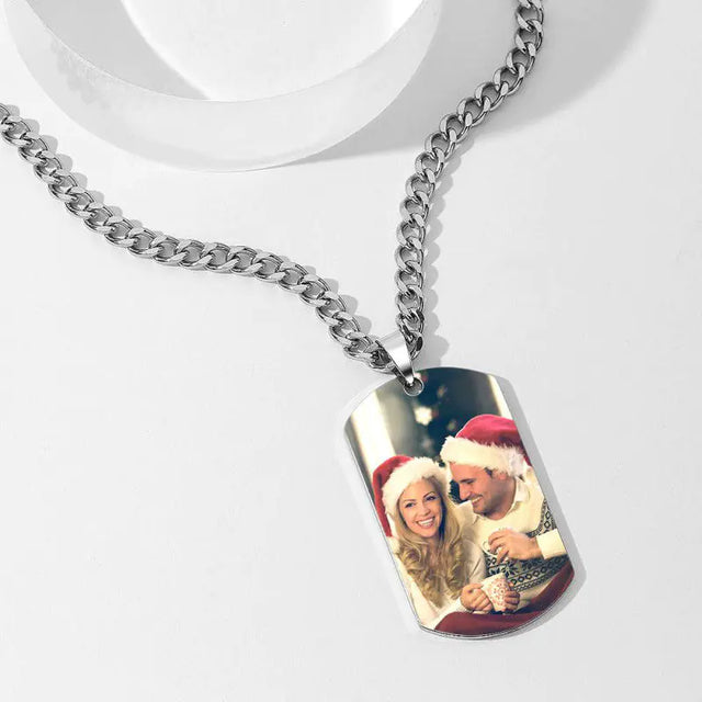 Discover the perfect blend of personalization and style with our custom photo-printed necklace, designed specifically for the modern man. Crafted from high-quality metal, this necklace not only showcases a unique geometric shape but also reflects your personal touch, making it an essential accessory for any occasion.