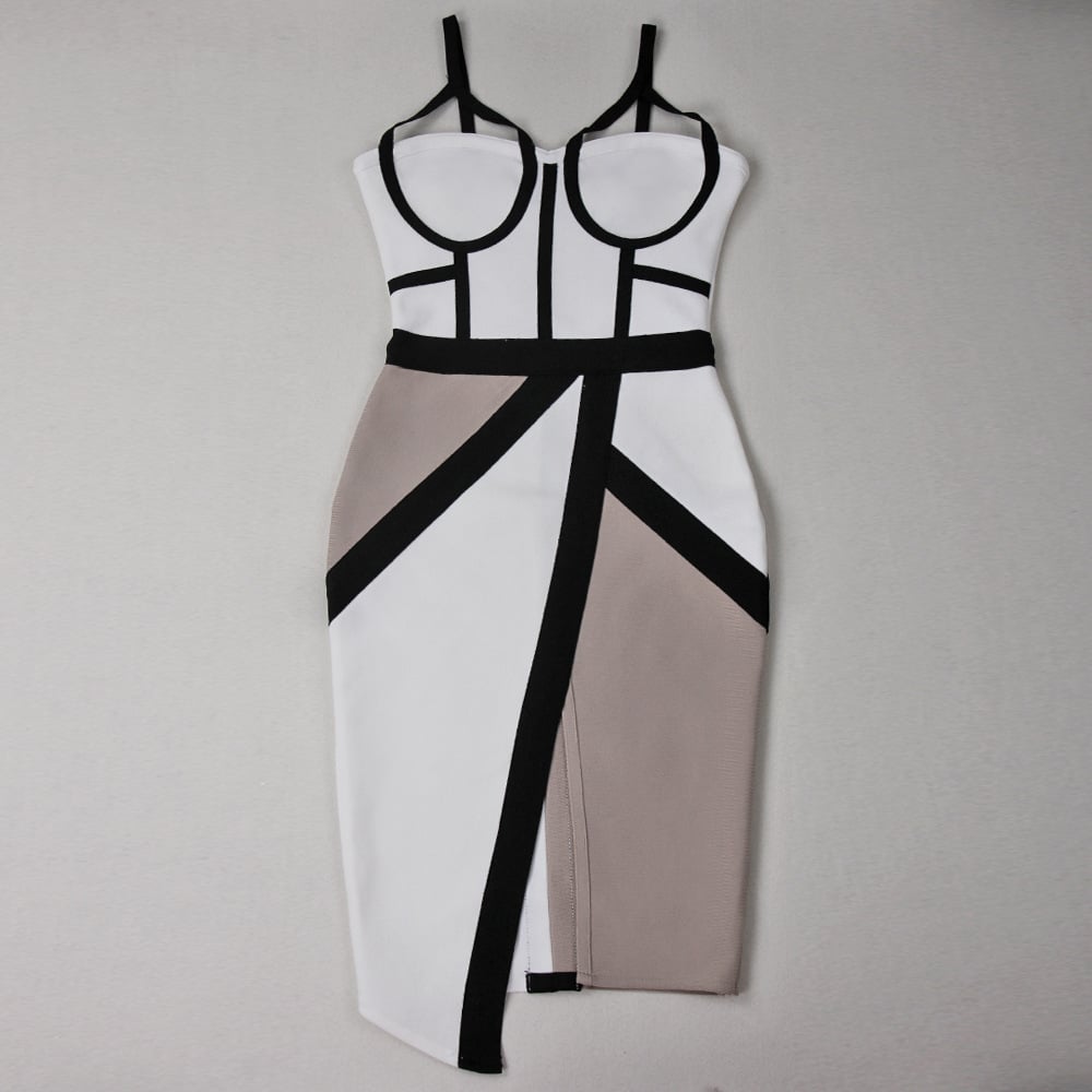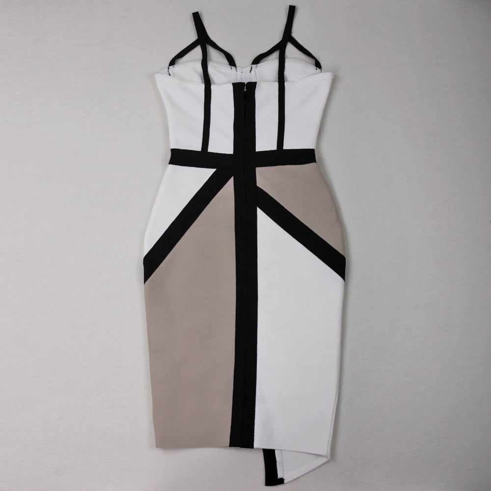 Color Block V-neck Sleeveless Spaghetti Strap Dress - White / XS is backordered and will ship as soon as it is back in stock.